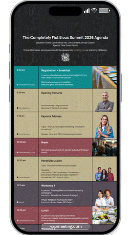 VXP Virtual Meetings are a true corporate event destination for remote attendees, delivering a memorable experience—made even better with VXP Connect’s smart digital meeting tools.