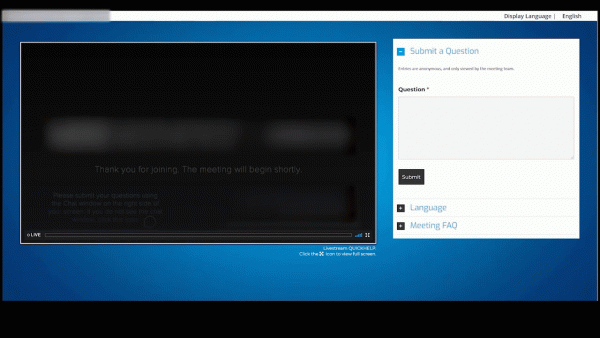 On the backend, select a question (in any order submitted) to be viewed on the presenter screen, mark any questions to be archived (e.g. to address later and hide from the meeting list), or **